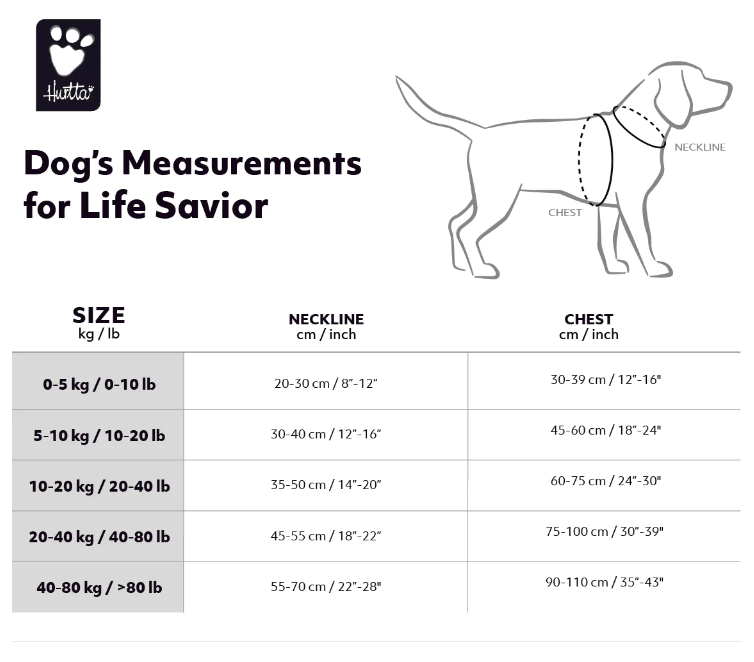 Hurtta Life Savior on uuden sukupolven virtaviivainen koiran pelastusliivi. Erikoismuotoiltujen kellukeosien ansiosta liivi on erittäin hyvin istuva ja kevyt. Liivin keveys ja muotoilu takaavat koiralle vapaan liikkumisen niin vedessä kuin maalla. Säädettävien hihnojen ansiosta pelastusliivi on hyvin istuva.